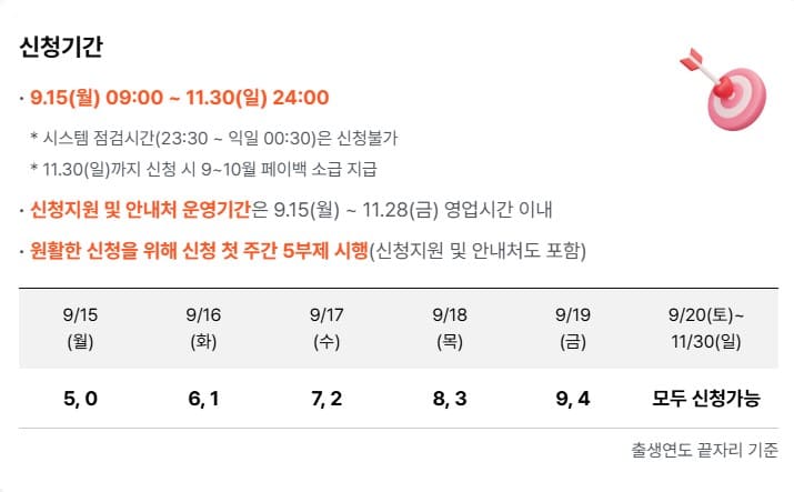 | ③ 응모하기 | 9/15~10/13 상생페이백 홈페이지에서 본인 인증 후 응모 |